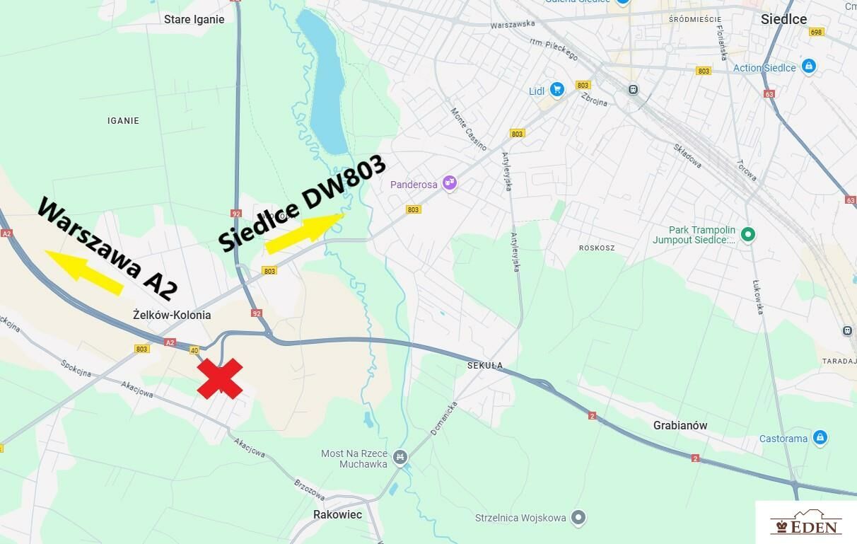 Do centrum Siedlec ok.5 km, łatwy dojazd do A2 oddalonej o ok. 3 km (węzeł Siedlce Południe), gwarantuje to dobrą komunikację i dostęp do niezbędnej infrastruktury.